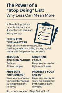 The Power of a “Stop Doing” List: Why Less Can Mean More We live in a world that glorifies busyness. Productivity is often measured by how much we can cram into a day, How many tasks we tick off, or how many hours we spend hustling. But here’s a simple truth: Being productive isn’t […]
